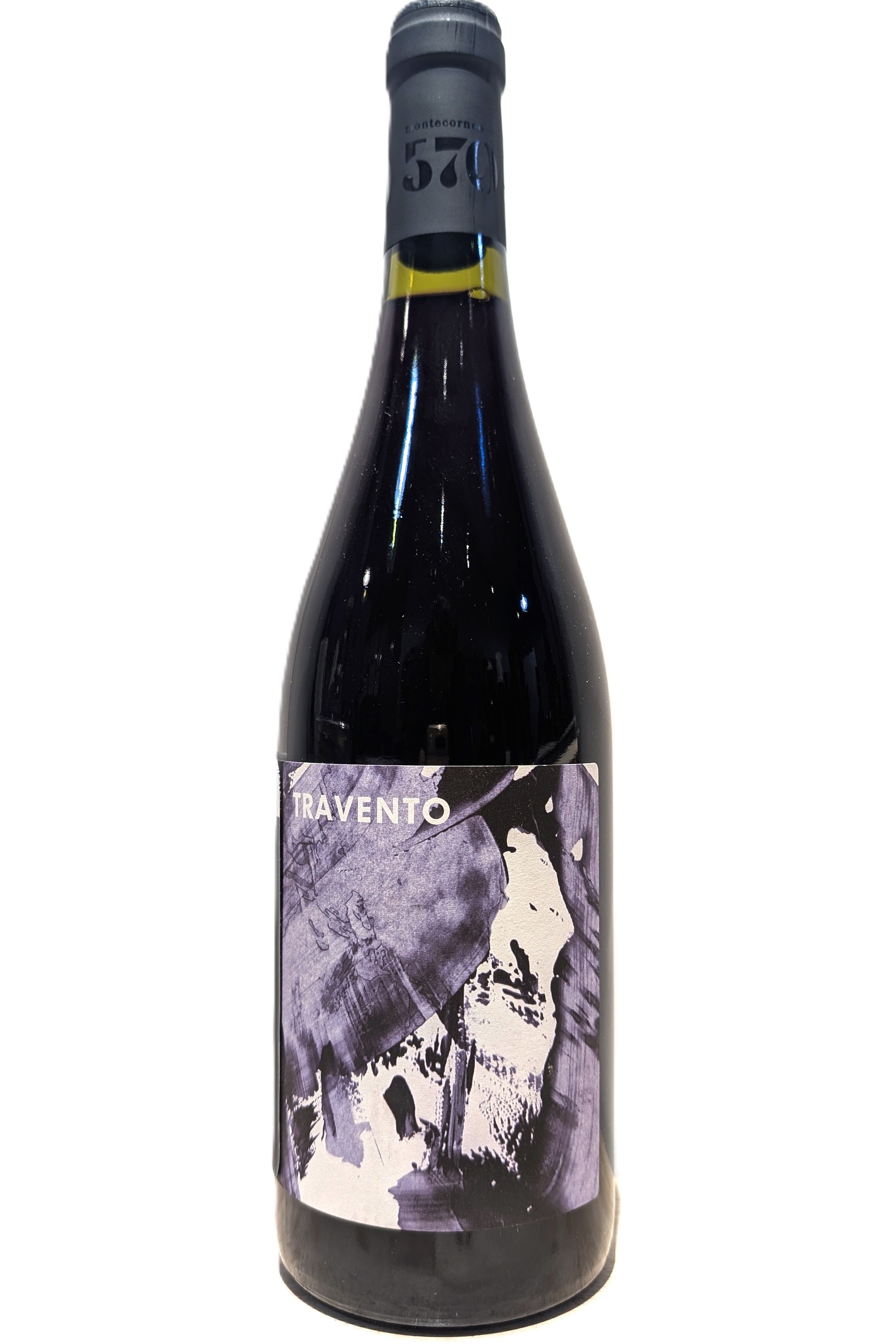 The label is a painting by Francesco seen and taken in his studio on Rue Rivoli, very small and very powerful thanks to the clarity of the line in its single color. Travento is so named after having just escaped a hailstorm in 2020, thanks to the orientation of the rows that allowed the bunches to survive. It ferments this way because we like to return the flesh of the Merlot to the wine, not its skins.